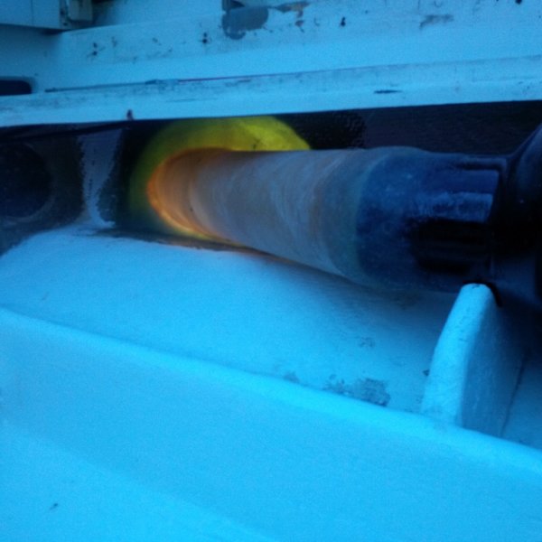 Port Side- cut-out and fitting for new 5" glass exhaust tubes